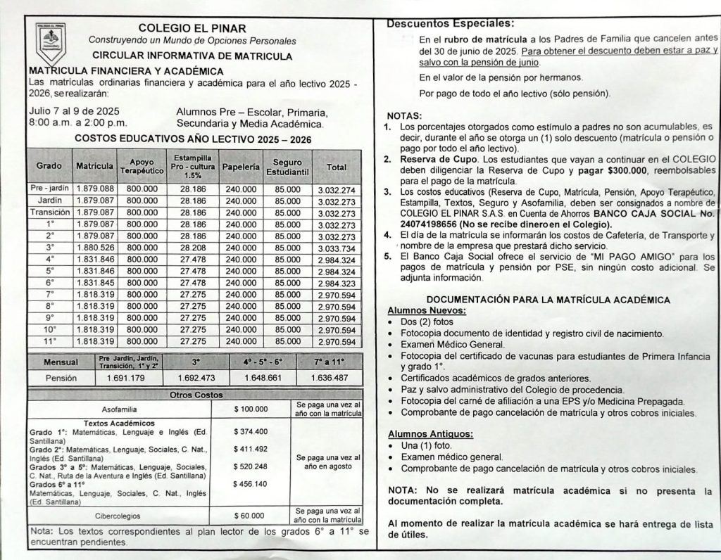 *Descuento por pago de todo el año lectivo (solo pensión)